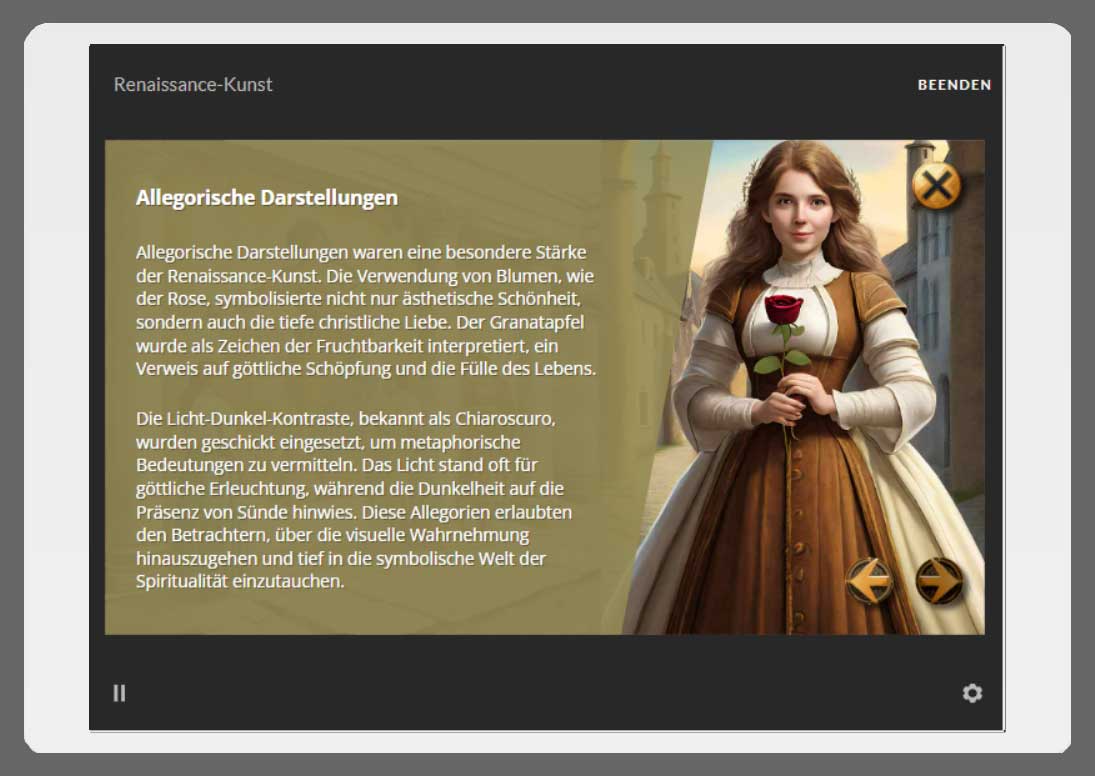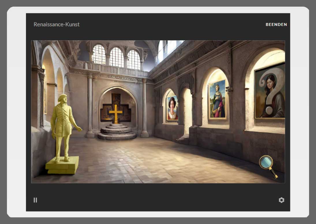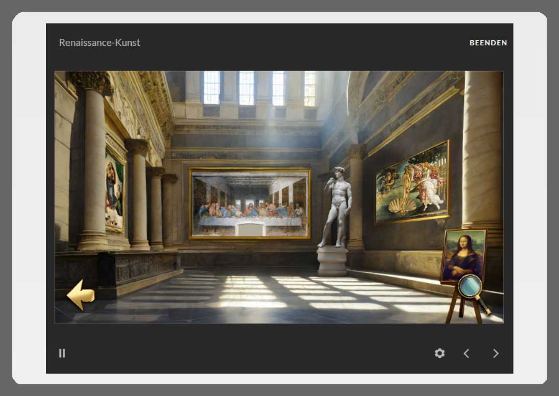 Insgesamt bietet das Raum-Training eine einzigartige Lernerfahrung, die die Vorteile des E-Learnings mit einer visuellen und interaktiven Dimension verbindet. Hier haben Lernende die Möglichkeit, das Wissen aktiv zu entdecken.